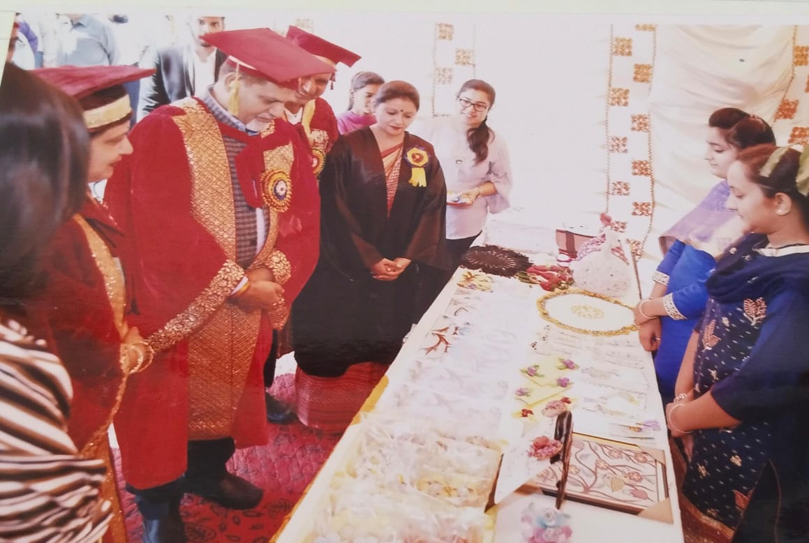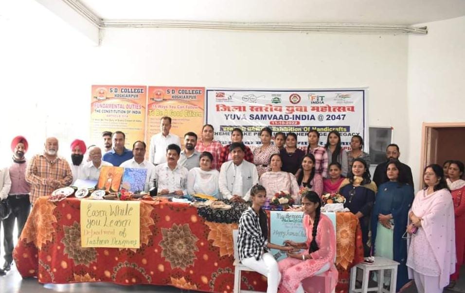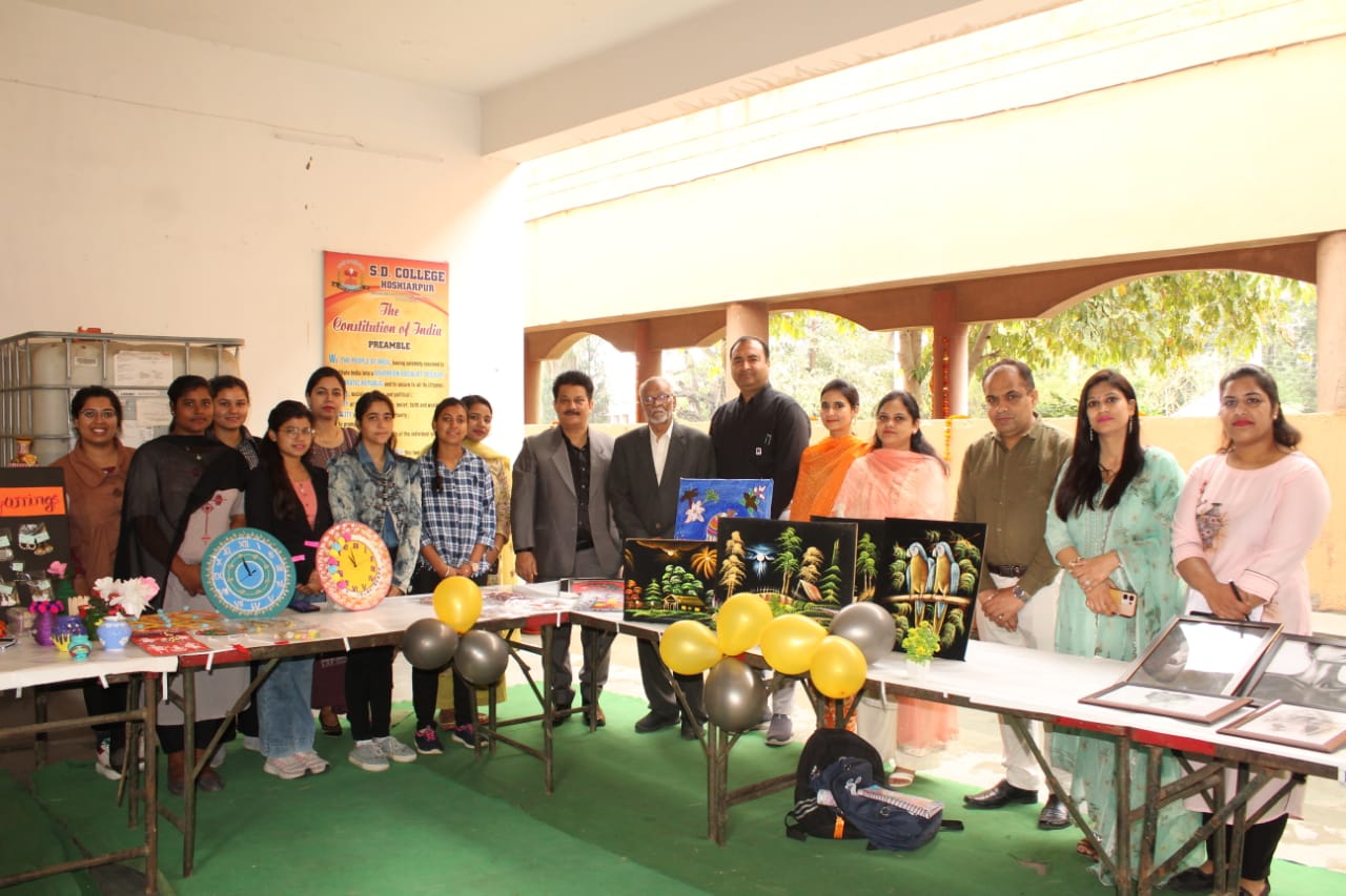 Under the patronage of New SD College Managing Committee, An exhibition was displayed by the Department of Fashion Designing under the theme of Earn While You Learn on 11 October, 2022 at district level yuha Mahotsav organised in college campus. 15 students participated and displayed paintings, apparels, Hoop art, chikku and other traditional items. The Exhibition was inaugurated by worthy MLA Mr. Brahm Shankar Jimpa ji, President Mrs. Hema Shrama ji and principal