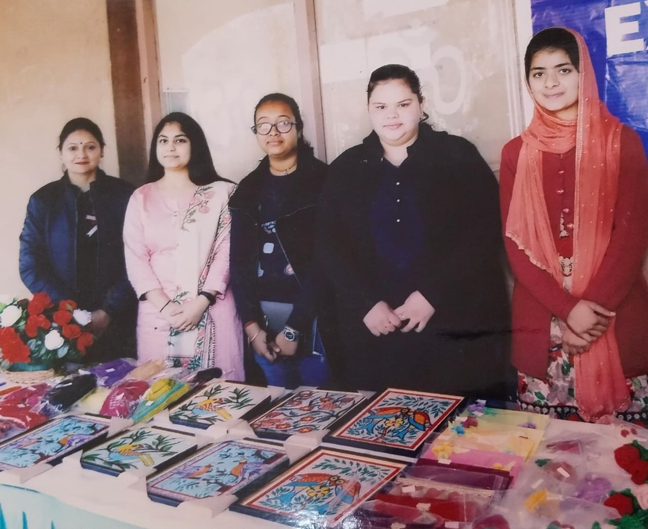 An Exhibition cum sale under the theme of Earn while you Learn was displayed by the students of the college on 03 February, 2019 during Alumni Meet. Different handmade articles were displayed by the students like posters, paper flowers, key ring holder, shagun cards, crochet items, chocolates and other handicraft items. The total amount earned by various students amounted to rs 8535/- approx